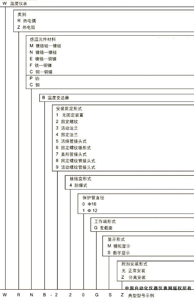 无固定装置(其它传感器选型参见装配热电偶/阻或隔爆热电偶/阻)