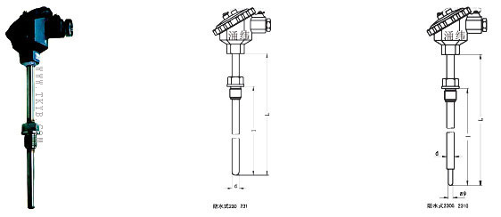 防水式固定螺纹式热电偶选型一览表